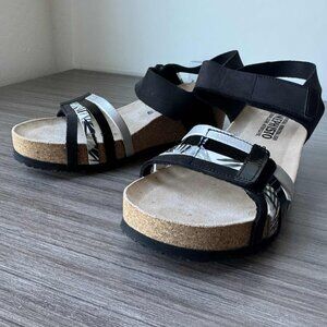 Add some sizzle to your warm-weather wardrobe! These platform wedge sandals are crafted with a trendy cork sole and sleek leather straps – the ultimate fusion of comfort and chic. Elevate your look while keeping it breezy, perfect for brunch dates or beach strolls. Delicate strapping at the toe enhances the sun-soaked vibe and injects a flourish of texture and color, for a touch of “dazzle” in every step. Fashion-forward, fun, and fabulously comfortable – the easy adjusting straps hold snug no matter where the party takes you, and our famously sumptuous foot-cradling support means you won’t mind walking to get there. Strap these on and rise to the occasion.