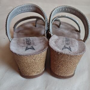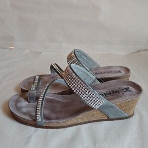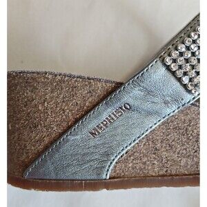 Mephisto Milly Shoes Womens Size 7 Steel Silver Wedge Sandals Rhinestone Straps