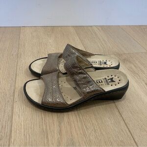 Mephisto Mobils Ulda Sandals Silver Metallic Leather Size 37 / US 7