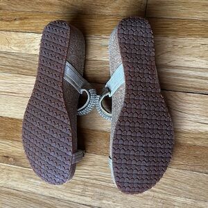 Slip into instant relaxation mode with the Mephisto Izabel sandal. Crafted with high quality leather, this charming sandal is embellished with with rows of mini rhinestones for opulent sparkle. Its breathable leather lining naturally wicks away moisture leaving the feet dry and less prominent to odors, while padded cork and latex footbed provides long lasting support, and latex outsole delivers great traction that grips for all-day ease. Perfect choice to pair with any warm weather outfit.