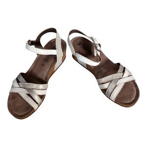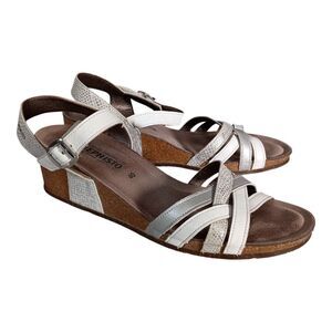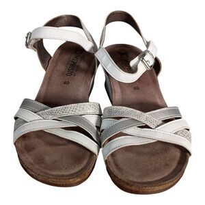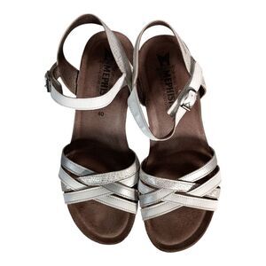 Mephisto Sandal Wedge Heel Strappy White Silver Leather Women's 40/US 10