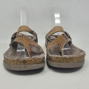 Mephisto Sandals EU37 US7 Helen Tan Snakeskin Print Leather Comfort Slides Thong