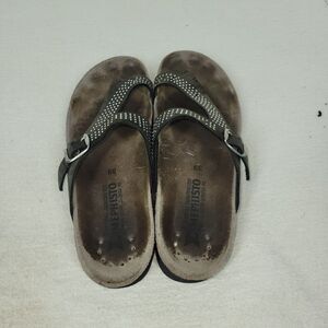 Mephisto Sandals Helen Womens Size 8.5 Silver Leather Faux Snake Thong Shoes