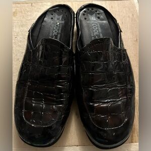 Mephisto Slides Women Black Patent Leather Crocometal Croc Print Mules Shoes 7.5