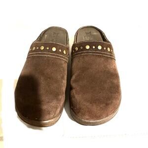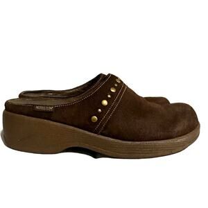 Mephisto Suede Leather Slip On Comfort Platform Mules Shoes Stud Brown Women 7.5