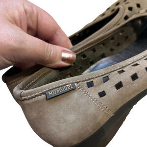 Mephisto Women's Francia Shoes Brown Nubuck Air Jet Slip On Cut Out Flats 8. These leather cutout flats are gently loved and in great condition. Tread is in great shape, overall good condition! Retailed new for $199. I'm open to offers to make these shoes yours. Also, I offer a bundled discount of 15% of 3 items or more. I ship every day!