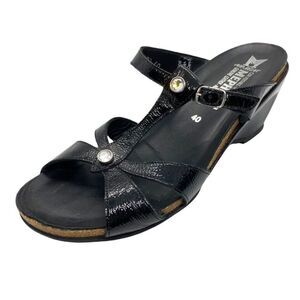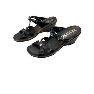 Mephisto Women's Nazli Sandals Black Patent Leather Crystals Wedge Size 10 / 40