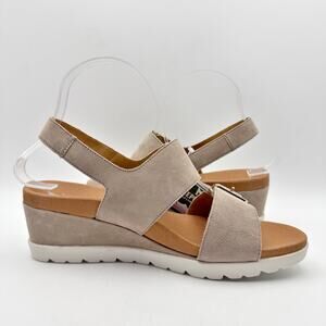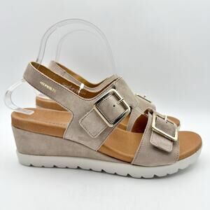 Mephisto Womens Ysabel Wedge Sandal EU 39 US 9 Taupe Platform Suede Leather NWOB