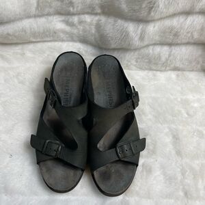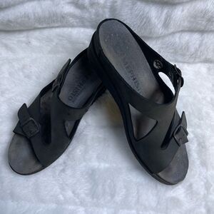 Mephisto black leather Air relax mobils wedge straps sandals side buckle…