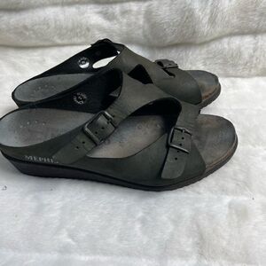 Mephisto black leather Air relax mobils wedge straps sandals side buckle SZ10 pre owned in good used condition normal wear see all pictures any questions please message.