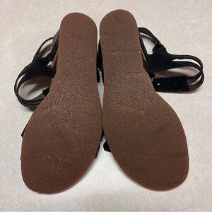 Mephisto cork wedge heel sandals Minoa black size 37 lizard rhinestone