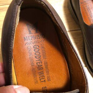 Mephisto men dark brown leather derby's, leather lining, thick sole size 11, Made in France
