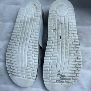 Mephisto Leather off white thong cork wedge sandals with floral accent EUR 38 pre owned in good used condition signs of wear on the inner and outer soles see all pictures any questions please message. E11