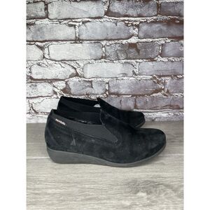 Mephisto Mobils Black Suede Leather Slip On Wedge Shoes Women’s Sz 6M US/36.5EU