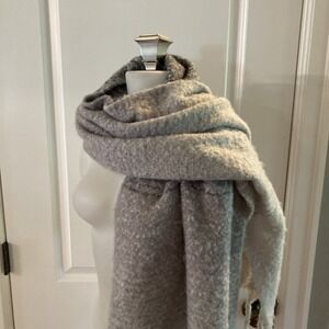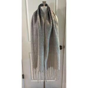 Mer Sea Anthropologie Scarf Gray Ombre Oversized Fluffy Fringed 78 x 20 Blanket