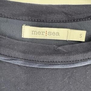 Mer Sea top womens small S navy blue satin back minimalist office work career