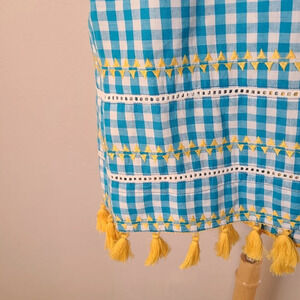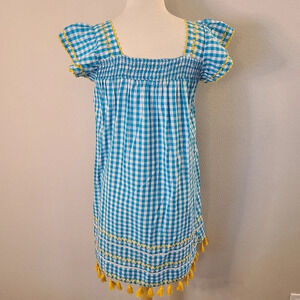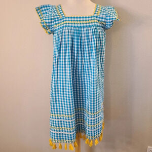 Mer St Barth Sandrine Turquoise Check Mini Dress. She'll want to dance under the stars at Toiny in the boho-inspired Serena dress with its double layers of tassels and twirly skirt. The super soft cotton gauze fabric is embellished with whimsical embroidery. It has hidden side pockets. It is new with tags.