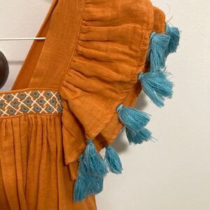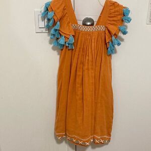 Mer St Barth Sandrine Girls Tassel Dress. Tangerine/Turquoise Tassels. Size 10.