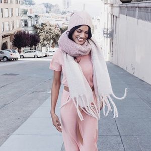 Snuggle up in style this season! This luxurious soft 100% polyester knitted scarf will keep you warm while looking chic.