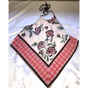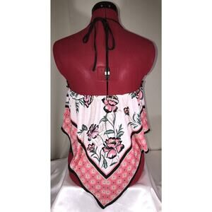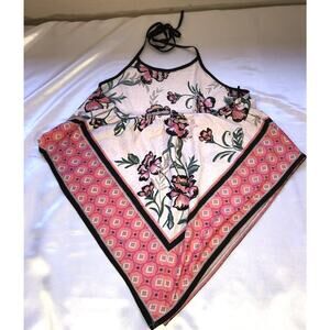 Meraki Halter Handkerchief Backless Flowy Feminine Top Floral Pink Womens Sz M