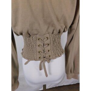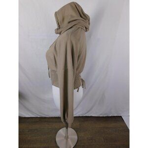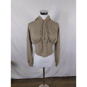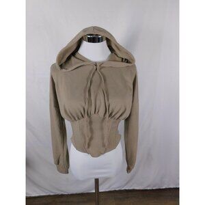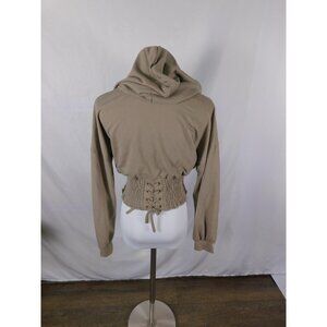 Meraki Hoodie Womens Medium Beige Taupe Cropped Corset Lace Up Waist Long Sleeve