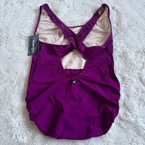 Meraki Wear Leotard Solid Fuchsia Crisscross Back Dance Class Women's Size L NWT