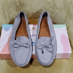 Mercanti Fiorentini Genuine Leather Driving Loafers in Grey/Silver Size 7