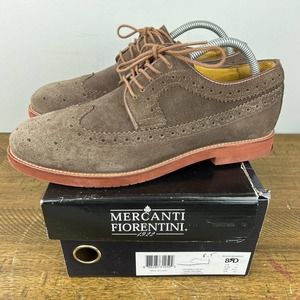 Mercanti Fiorentini Shoes Mens 8.5 Brown Suede Leather Wing Tip Oxford Relax