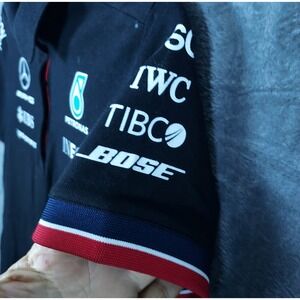 Mercedes AMG Petronas Formula One Team Polo - Black - Men - Size M Fits Small. Polo is in excellent pre owned condition. No holes, Stains or signs of excessive wear. Measurements are posted here. Know your size before purchasing, to avoid returns for fit. Please measure your shirt or pants. Armpit to Armpit 18" Collar to hemline 26"