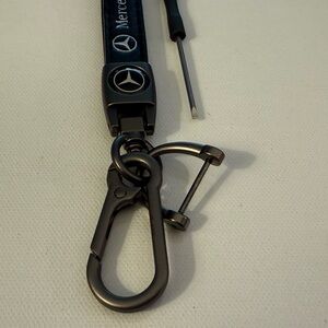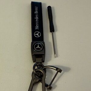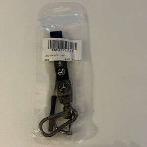 Mercedes Benz Key Fob Keychain in Black leather with Logo NWT