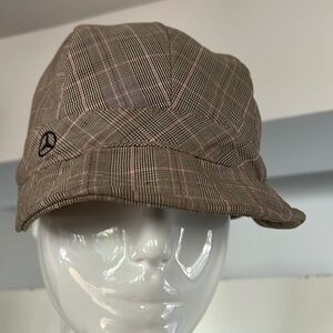 This is a great Mercedes Benz Pageboy Golf Hat Structured Brim. 5” high, 24” circumstance and 1.75” brim. Perfect condition. No stains. No odors. No tears. Brown, tan and light pink.