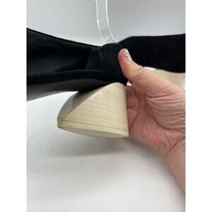 Mercedes Castillo Black Suede Cream Stacked Heel Slip On Peep Toe Shoe US 7
