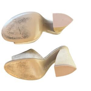 Mercedes Castillo Izar Block Heel Tan Cream Suede Mule Sandal Women's Size 6.5