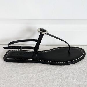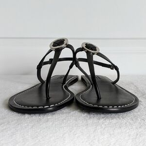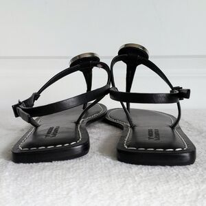 Mercedes Castillo Leather T-Strap Thong Sandal Flat Black Silver EU40 10 NWOB