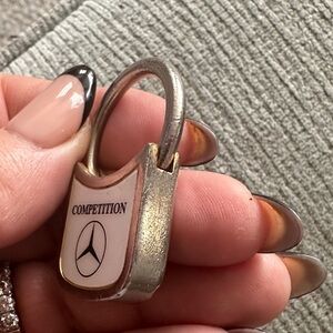 Stylish Mercedes key holder featuring the iconic logo. A perfect accessory for car enthusiasts. Used. The gold color wore off to silver color, as seen in photos.