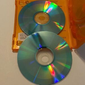-this comes from a library so there are stickers and writing from the library on case and discs