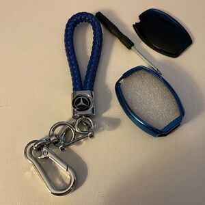 Mercedes Benz Logo fob Keychain in Blue Leather Rope & fob cover in Blue NWT