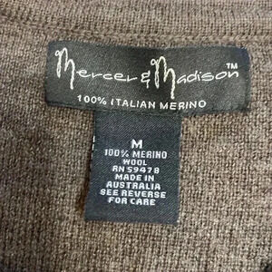 Mercer & Madison 100% Italian Merino Wool Brown Crew Neck Sweater Size Medium. Great or owned condition. Classic style.