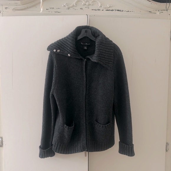 Mercer & Madison 100% wool long sleeve button down gray sweater with front pockets size L