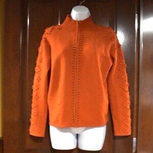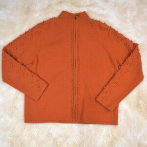 Mercer Madison Orange Lambswool Zip Cardigan Sweater Petite Medium Cozy Classic