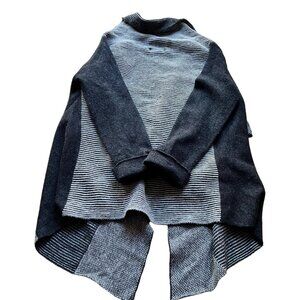 Mercer & Madison Size M Shawl Collar Open Front Lambs Wool Gray Pattered Sweater
