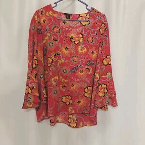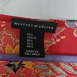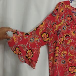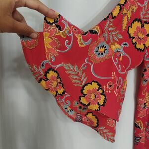 Mercer & Madison Womans Size L Red Blouse Peasant Boho Chic Tunic Flair Sleeves