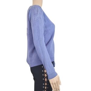Add a charming touch to your wardrobe with this Mercer & Madison button-up cardigan in a soft periwinkle purple hue. Featuring elegant floral embroidery on the back and a delicate rose detail on the front hem, this sweater blends cozy comfort with feminine flair.
