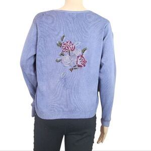 Mercer & Madison Floral Embroidered Cardigan Sweater Purple Button Front Women’s