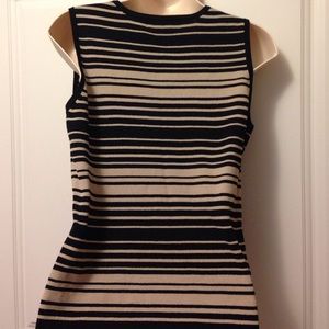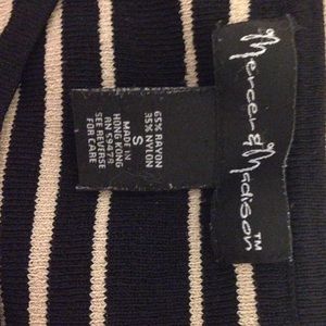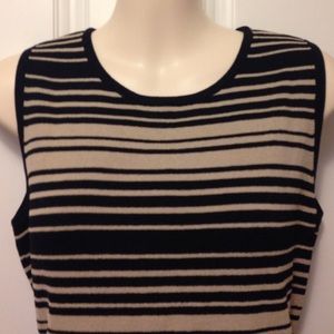 Mercer & Mercer women's knit rayon blend sleeveless horizontal striped top. Sz S. 65% Rayon , 35% Nylon. Pre-owned and in excellent condition. Measures approximately: 16 1/2" underarm to underarm, 21" in length from mid shoulder to bottom hem, 18 1/4" across bottom edge.