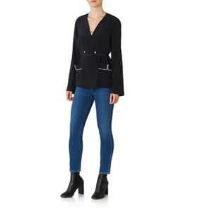 The Mercer is a smoking inspired robe that's as perfect as an outer layer as it is on it's own as a blouse. Features include dual front buttons and contrast piping on the pockets.
