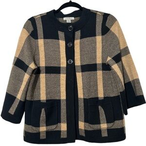 Mercer Street Studio Black & Brown Plaid Button Down Cardigan Sweater Medium