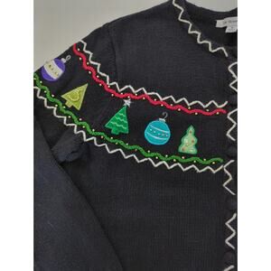Mercer Street Studio Black Multicolor Beaded Ornament Holiday Cardigan Size M