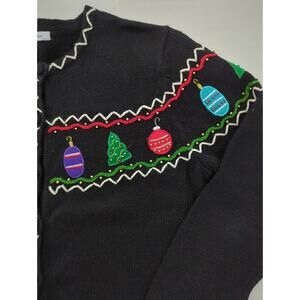 Mercer Street Studio Black Multicolor Embroidered Beaded Ornament Holiday Button Up Cardigan Sweater Women's Size M