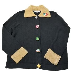Mercer Street Studio Holiday Winter Black Embellished Sweater Size P L